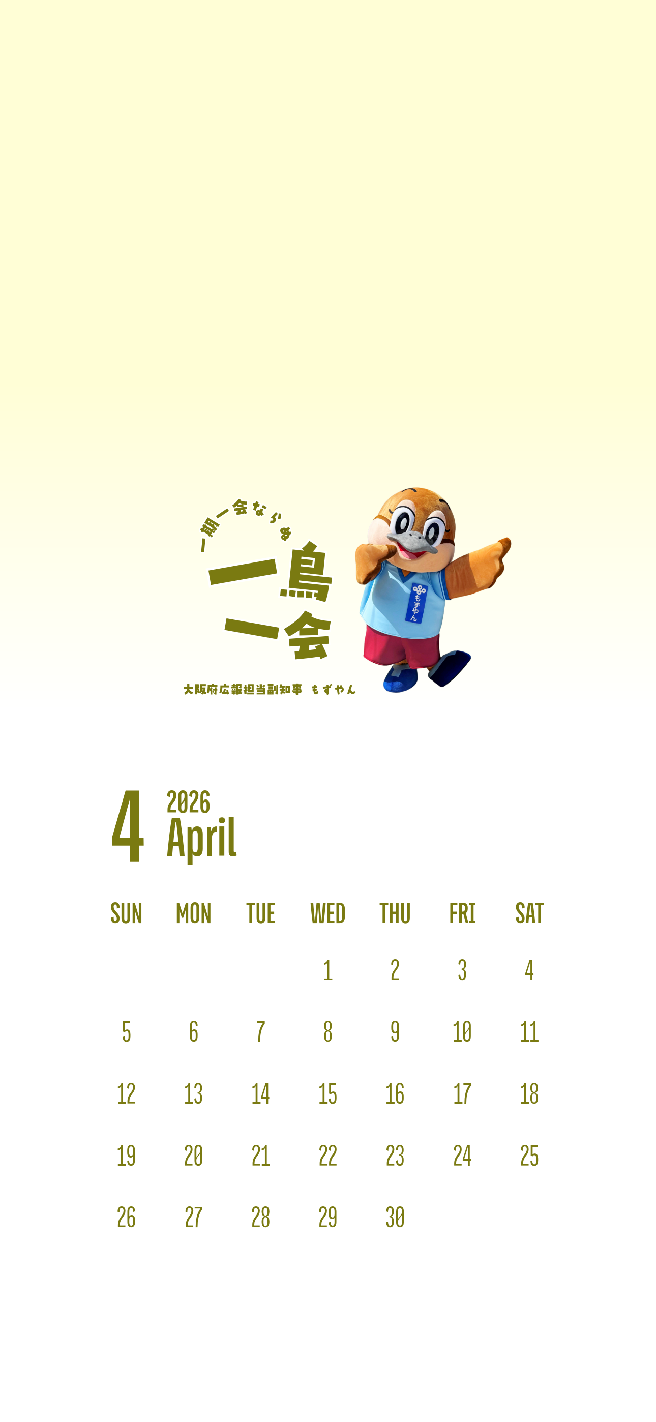 トップページ > 府政運営・統計 > 広報 > 大阪府広報担当副知事もずやんの部屋 > もずやん壁紙カレンダー
