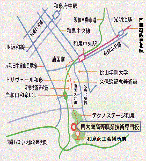 - 南海バス5番乗り場より「和泉商工会議所前」行きにご乗車になり、終点「和泉商工会議所前」下車すぐ(所要時間約15分から20分)