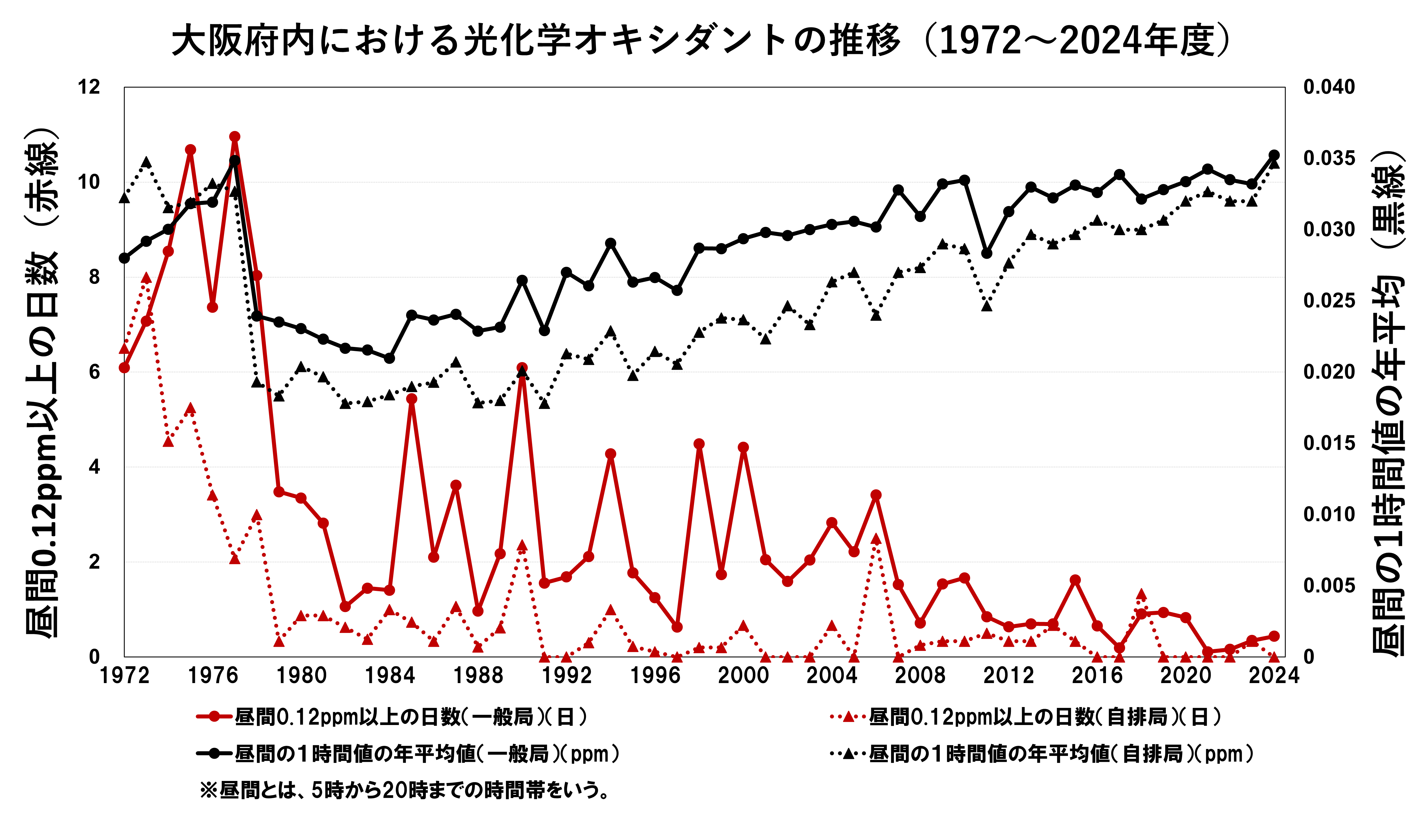 【参考】大阪府内における光化学オキシダントの推移(1972年度から2024年度まで)←New!! ダウンロード用データはこちら(PNG:597KB)