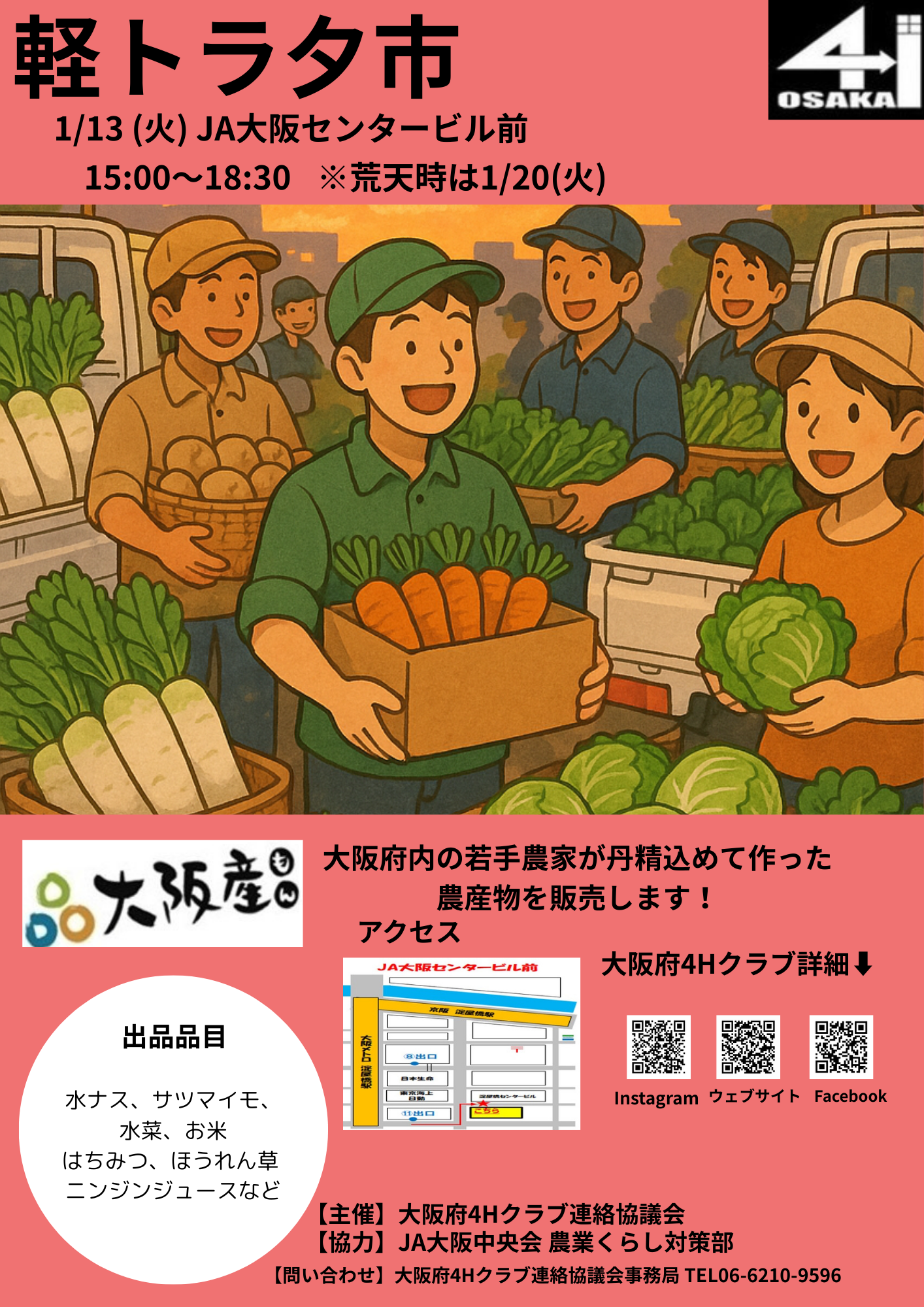 ※悪天時:1月20日(火曜日)15時00分から18時30分まで - 会場:JA大阪センタービル前(大阪市中央区高麗橋3-3-7)